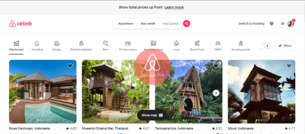 Giao diện Airbnb trên Mobile