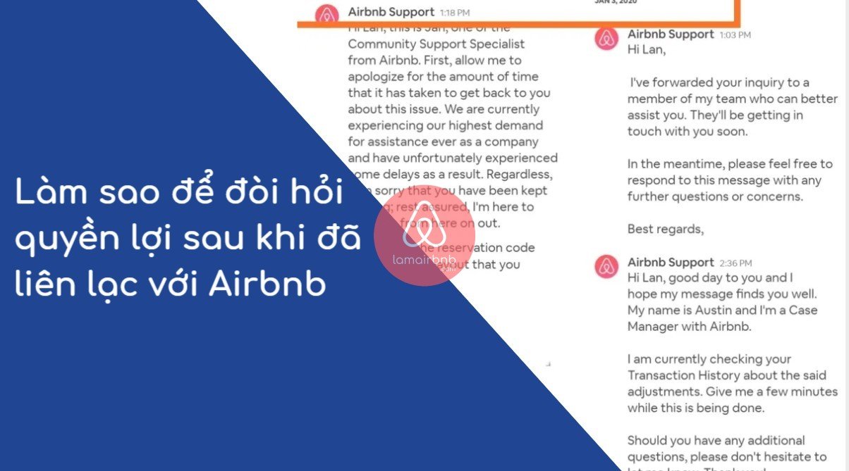 Làm sao để đòi hỏi quyền lợi sau khi đã liên lạc với Airbnb ?